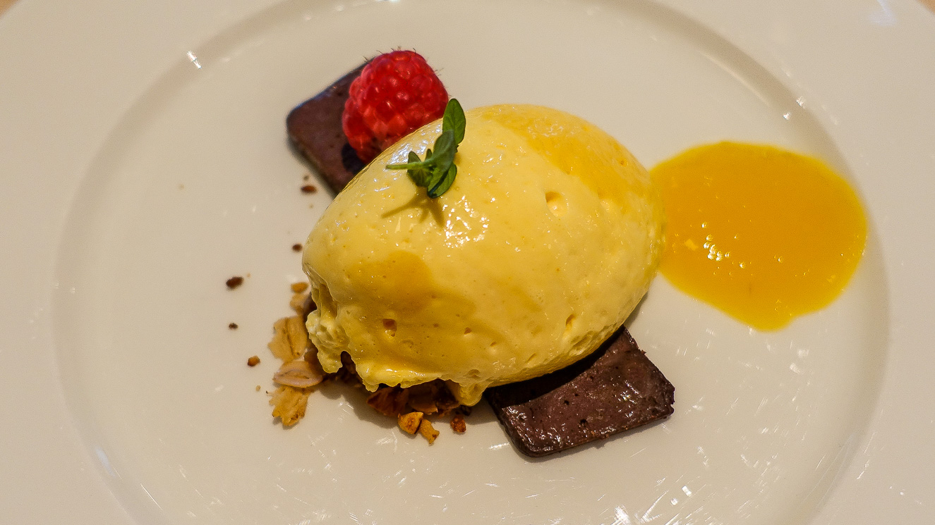Till dessert var passionsglass med mango och deliciös mörk choklad.
