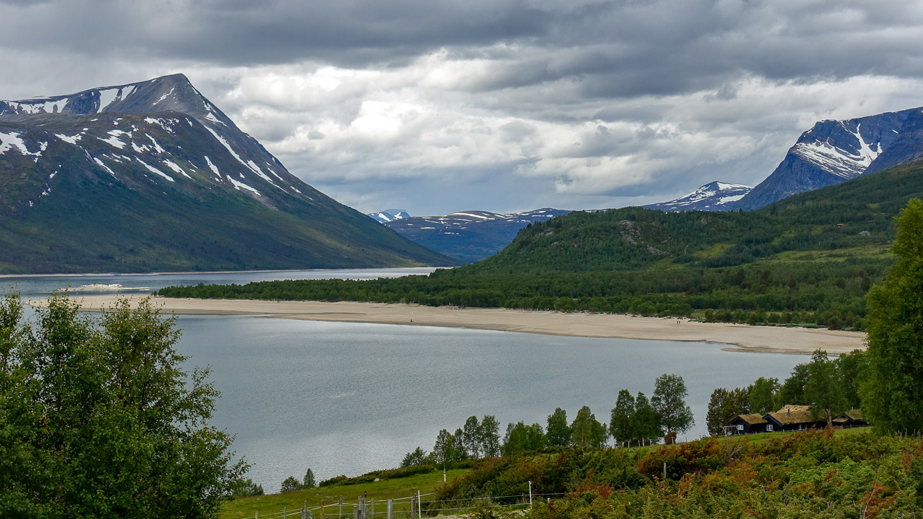 Efter en stärkande frukost åker vi västerut genom skogen till närliggande Oppdal. Inne i denna fjällstad lever runt 7 000 invånare, utanför betar uppemot 60 000 får. Dessa välmående goa får syns nästan överallt i Gjevilvassdalens sagolika fjällvärld med uppemot 1 400 meter höga toppar, vattendrag och typisk fjällskog med låga träd, blåbärsris och ljung. Fåren betraktar förbipasserande bilar med dödsföraktande nyfikenhet från vägkanten eller liggande på vägen. Så får vi syn på själva sjön Gjevillvatnet. Vilken bedårande skönhet! Vi stannar till och beger oss till en brygga för att ta in vildmarken omkring oss. Sjön är så stilla och fjällområdet Trollheimen (trollens hem i fri översättning) känns så mäktigt, så närvarande. Men vad är det som förtrollar oss på 650 meters höjd? Vi håller andan. En lång naturstrand med sand, tillika Norges högst belägna och tydligen centrala Norges bästa. För vår del kan man lägga till Nordens tommaste sandstrand, för det är bara ett fåtal människor här. Någon badar fötterna. Av grimasen att döma, är vattnet vederkvickande.