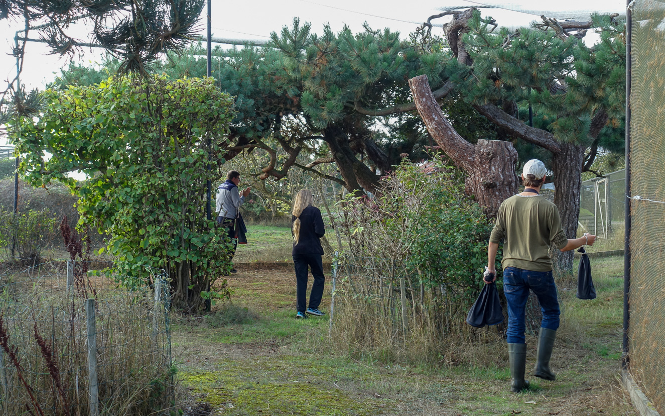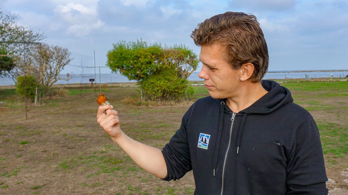 Volontärerna Sam och Sara går före oss och klappar händerna medan den fast anställde Hannes gör ljud intill de utspända fågelnäten på gården utanför Ottenbys fågelstation. Så gör de från soluppgången till klockan elva på förmiddagen, två gånger i timmen.