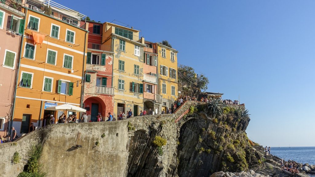 Nu närmar vi oss staden Riomaggiore som ingår i Unesco världskulturarv Cinque Terre. Ännu en ikonisk utsiktsplats med idel glada italienare – Telegrafo. När vi lämnar platsen är vi nästan ensamma i trapporna utmed vinodlingar. Havet och Riomaggiore kommer närmare för varje steg.