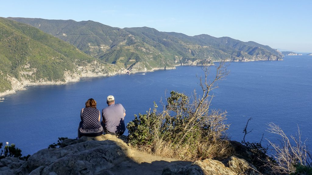 I en mening: Hela området har något som väcker det insomnande romantiska inom mig. Behöver jag verkligen vara mer konkret än så? I så fall kan vi exemplifiera med den relativt lätta vandringen mellan Monterosso och Levanto. Vandringsleden bjuder på spektakulära vyer högt över Medelhavet. Vi blev tagna av den sagolika utsikten över Monterosso och havet, där panoramavägen går utmed havet som brusar runt 300 meter ner. Sinnena förfördes av dofter från kryddörter och rosmarin medan smultronträd lyste upp i rött och orange. Framme i Levanto hann vi uppleva solen slukas av havet och färga horisonten röd. Samtidigt är livet knappast fulländat utan det romantiska panoramat av Manarola och Medelhavet uppifrån, vilket avslutas med en “kyss” mellan Manarolas mångfärgade, sammangjutna små hus på en dramatisk klippa – och Medelhavet.