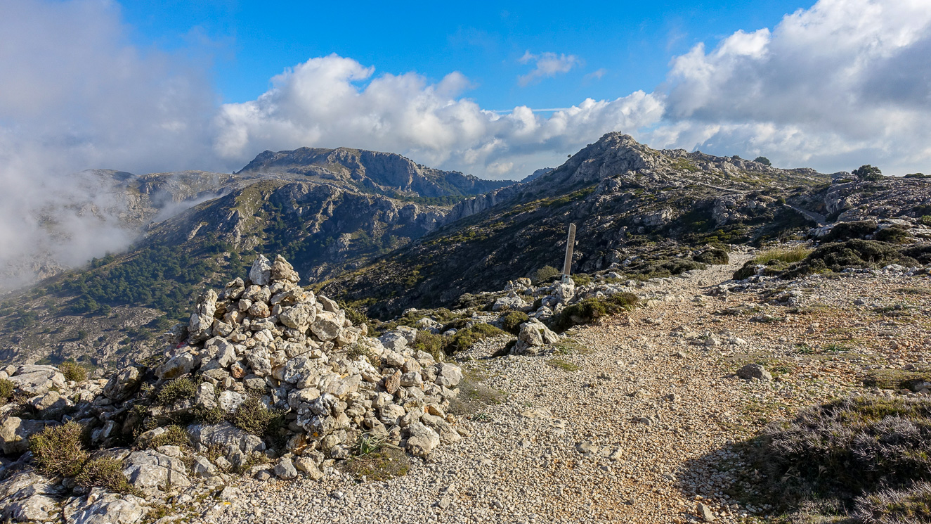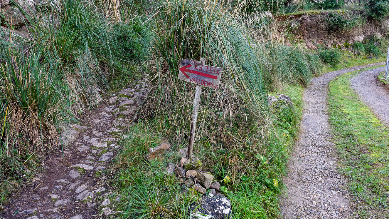 Sedan lämnar vi pittoreska, exklusiva, tjusiga Deia och går längs trottoaren för att rätt snart svänga in (till vänster) vid Hotel es Moli. Vägen bär genast uppför och lika bra att vänja sig vid detta tillstånd och hitta en lagom lunk för att orka upp under 2,5 timmar nonstop. Vandringsvägen hör till GR221, den stora vandringsleden tvärs genom Tramuntana. Men lurigt nog saknar leden här officiella markeringar (antagligen för att markägare motsätter sig detta). Däremot finns det inofficiella markeringar som gör det enklare att hitta rätt.