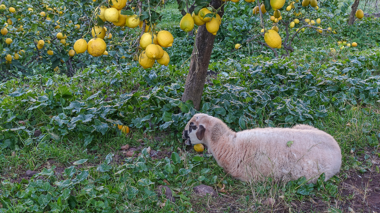 Uppstigningen tar äntligen slut och vägen fortsätter nedåt genom en olivodling med betande får. Nu syns Fornalutx, också kallad Mallorcas vackraste by, med dess välputsade lantliga stenhus och frodiga trädgårdar. Jag kan inte släppa synen av det idisslande fåret under ett citronträd med gult skimrande frukt. En sinnebild av fridfullhet.