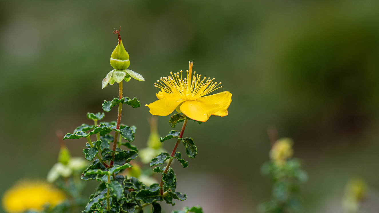 Mitt i sluttningen stannar han tvärt till vid en låg buske: en balearisk sort av johannesört vars latinska namn lyder hypericum balearicum. Ni har gissat alldeles rätt: Xavier är biolog.
