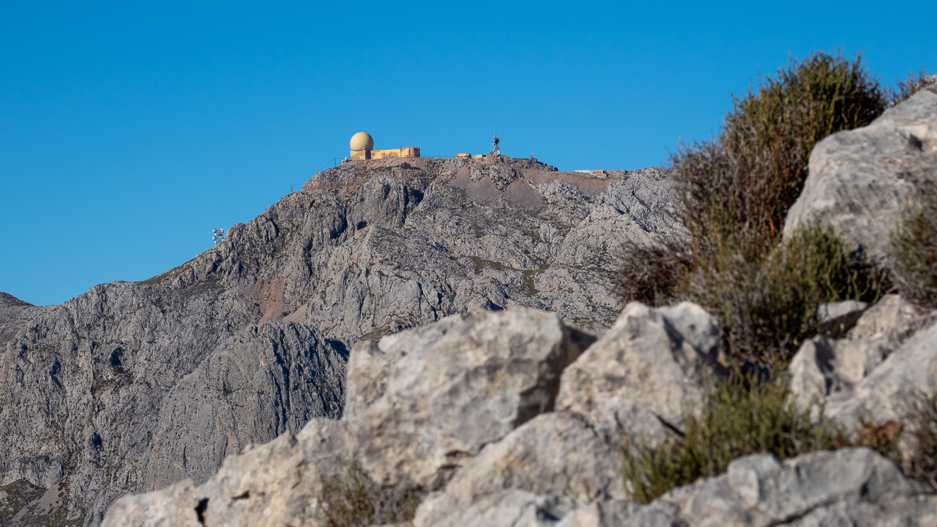 Snart är vi vid dagens tredje, och högsta, topp: Serra des Teixos E. Utsikten är oförglömlig. Härifrån ser vi över havet och norra Mallorca, däribland Victoriahalvön, Formentor och Puig Tomir. Här känner vi att vi efter fyra timmars fysisk ansträngning med en hel del mentala anspänningar har förtjänat en rejäl lunchpaus. Vår vana trogen slår vi oss ner på en klippa på drygt 1 000 höjdmeter och äter pastasallad.