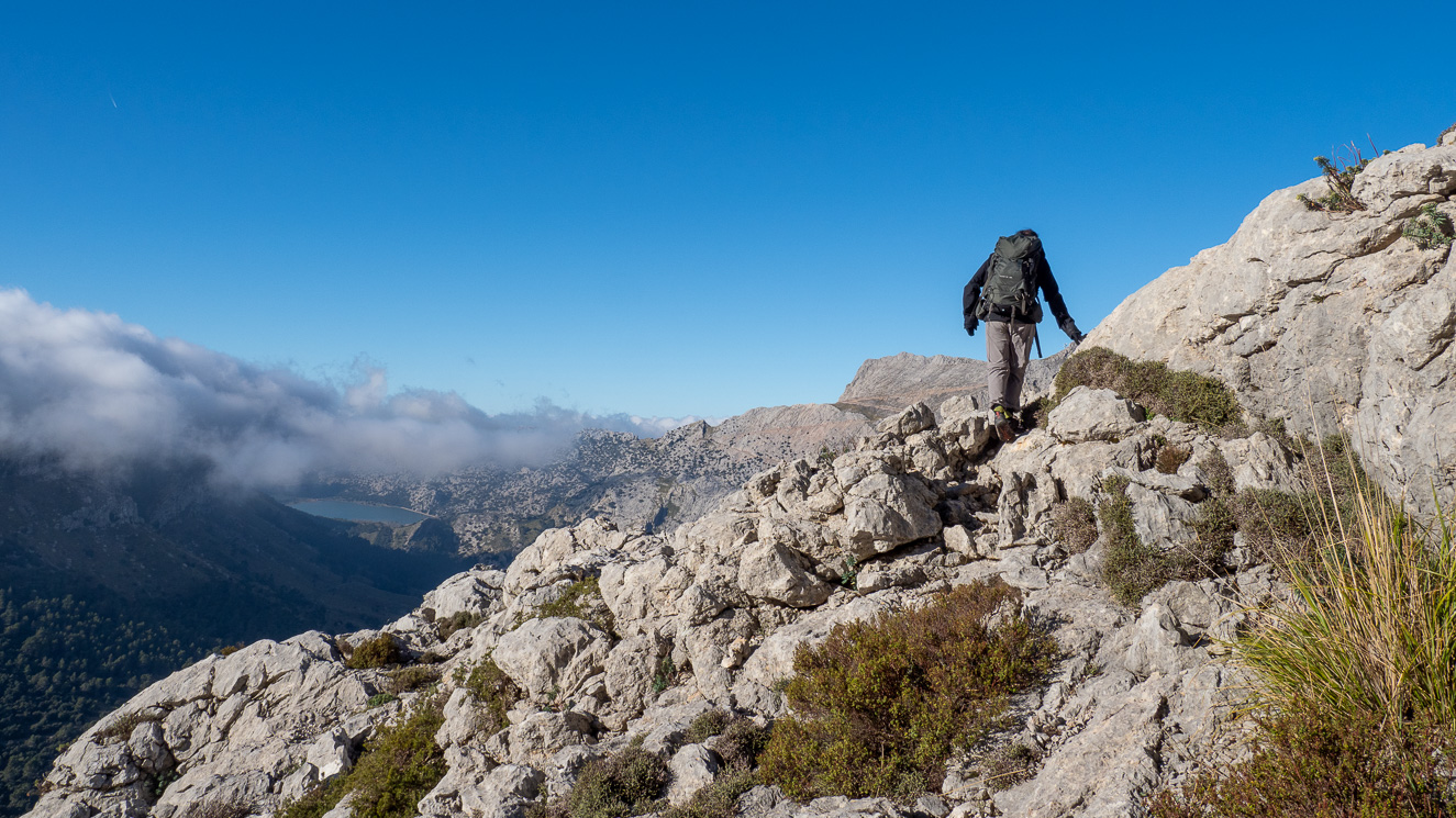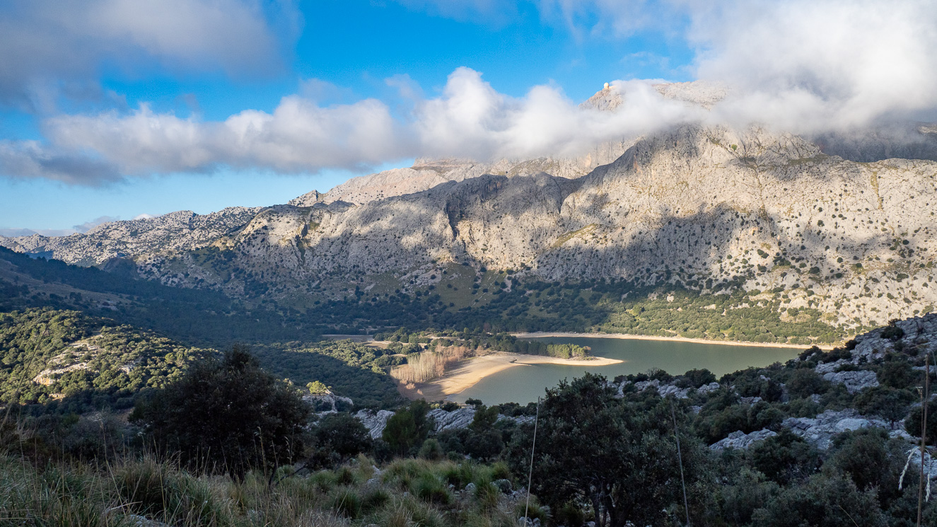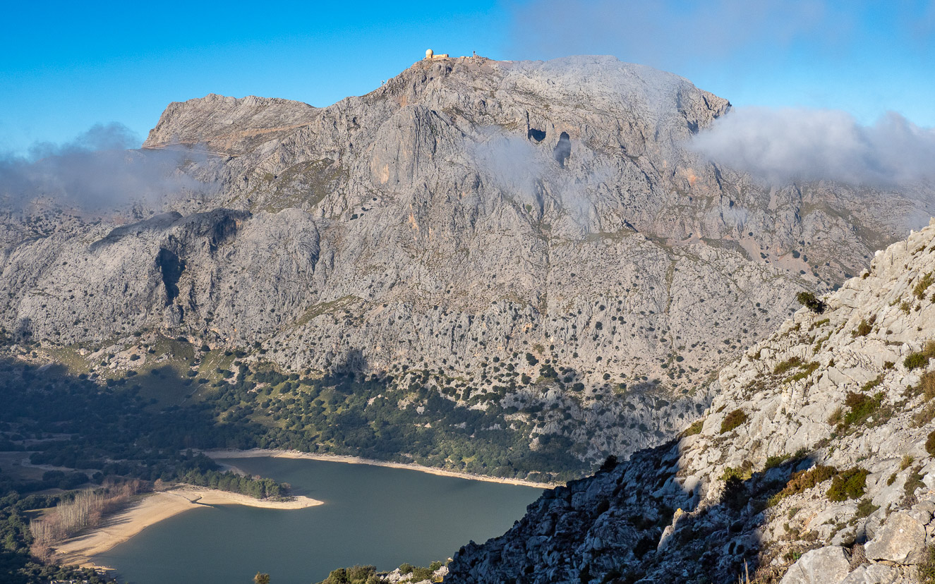 Det går bra och uppe på en platå kan vi i ett förstulet ögonblick pusta ut till hisnande vyer över ståtliga Puig Major och dammen Gorg Blau.
