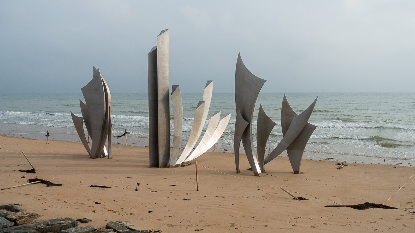 Minnesmärket med det träffande namnet ”De modiga” (Les Braves) på Omaha Beach.