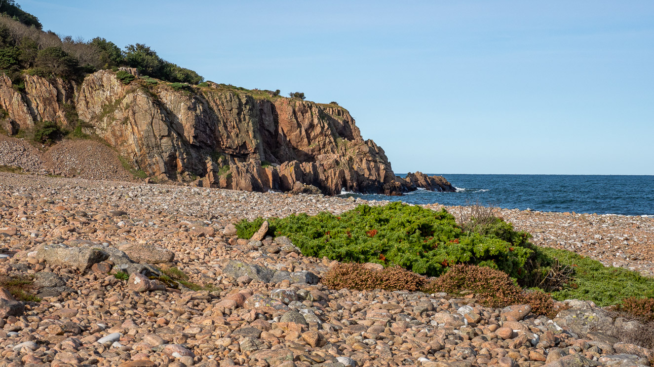 Som belöning för den branta uppförsbacken väntar en lika brant nedförsbacke, men trots små stenar här och var är det inte svårt. Tillbaka “på markplan” igen stävar vi över ett klapperstensfält utan att kunna få nog av skådespelet som uppstår när höga vågor slår mot dramatiska klippformationer intill oss. Vad kan överträffa detta?
