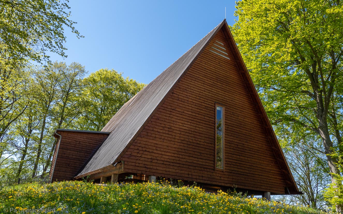 Efter en granskog går en ridå upp och avtäcker böljande gröna kullar med maskrosor, tusenskönor och förgätmigej. Kulturlandskapet runt oss präglas av betesmark, mossklädda stenmurar, stenrösen och gammal odlingsmark. Vi går på platåberget med allt öppnare vyer tills vi måste hejda oss. Framför oss står några vindpinade bänkar i en halvcirkel och ett enkelt träkors. Vinden, pulsen och närvaron tilltar. I blickfånget har vi den lantliga nejden, Hornborgasjön och Gudhems kyrka.