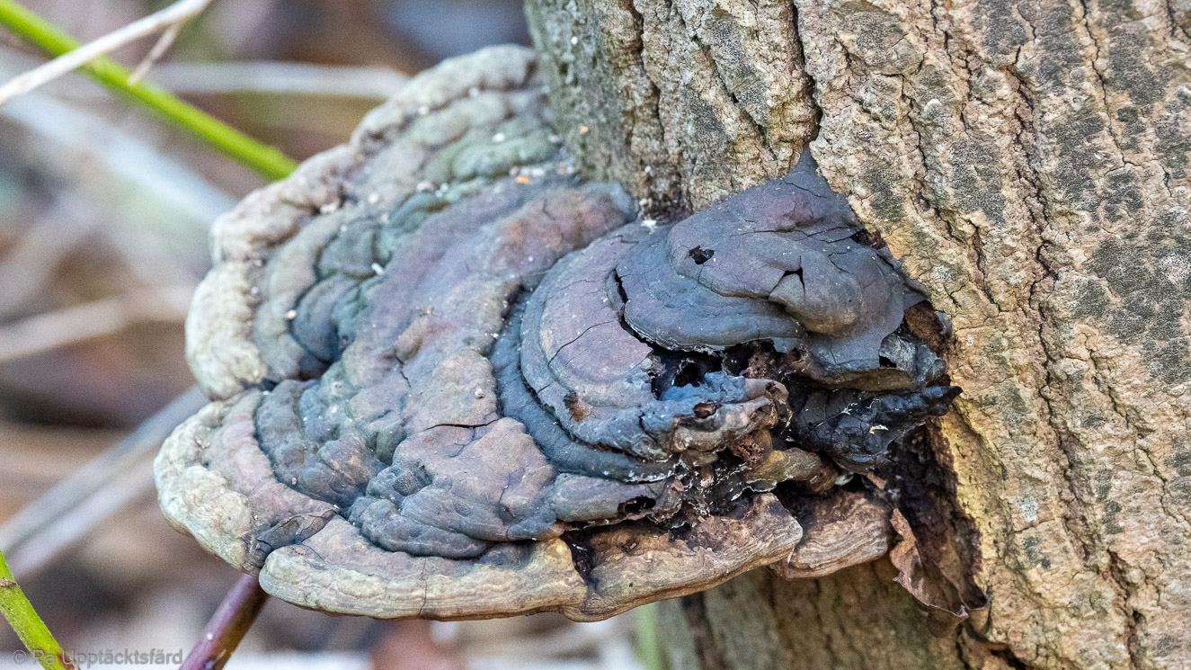 Rökande röksvamp på en trädstam. Slutfasen av en vårtig?