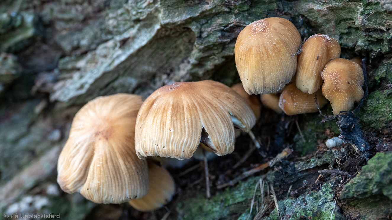 Några av naturreservatet Ärtan och Bönans många nyfikenhetseggande svampar.