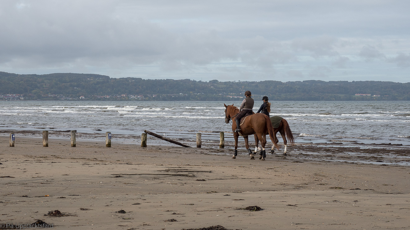 Vi följer Kustslingans blå markeringar, en led som leder oss havsnära, med ljud från såväl vågor som gäss i öronen. Bortom vresrosor, tallar och taniga björkar syns havet. Icke förty vill vi komma havet ännu närmare; sålunda avviker vi från Kustslingan och går direkt på stranden. Känslan är helt annorlunda, havet är omtumlande nära, frihetskänslan är nästan berusande.
