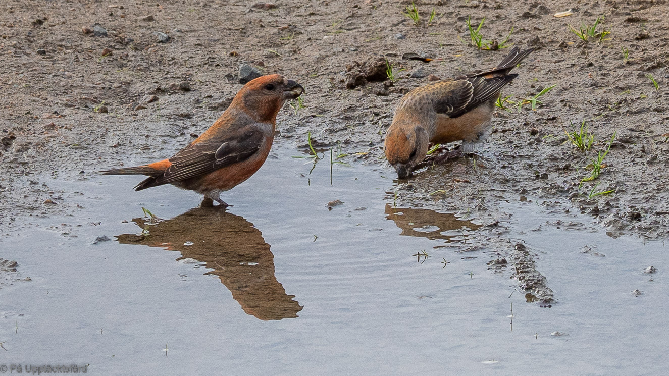 Ett magiskt ögonblick. Mindre korsnäbbar släcker törsten framför våra ögon.