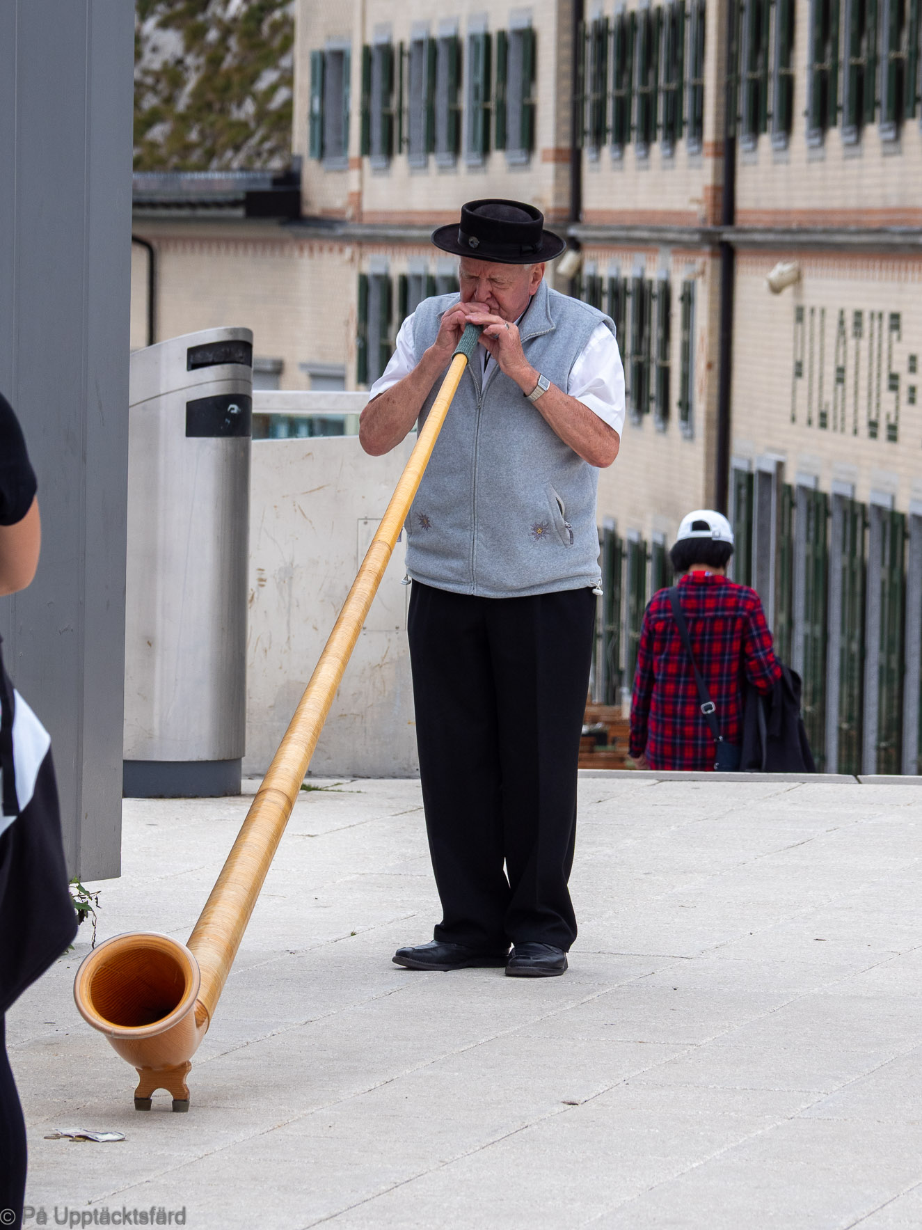 Panoramaterrassen bjuder på vidöppna vyer över Vierwaldstättersjön och alper högre än 4000 meter som Munch, Eiger och Jungfrau liksom många andra av Berner Oberlands giganter. Här blandas alpkajans ropläte med en joddlande musiker i traditionella kläder som även spelar alphorn.