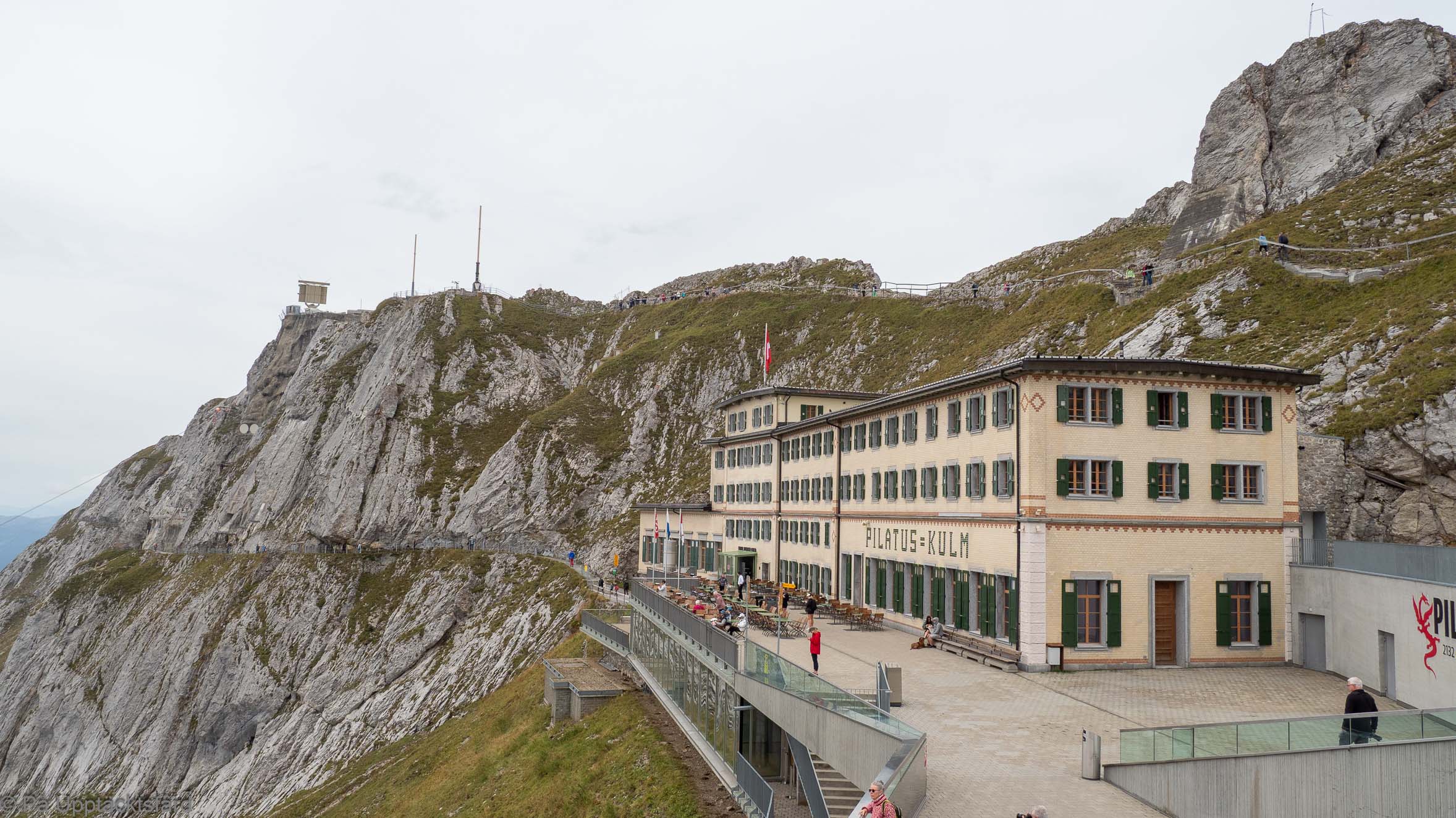 Det finns flera utsiktsplatser, vilka kräver en liten promenad, så vi har att göra. Vi står alldeles intill toppen av Pilatus och förnimmer flämtandet av människorna bredvid. Dessa överdådiga 360-gradiga utsikter tar bokstavligen andan ur en. Även den tunna luften gör förstås sitt.
