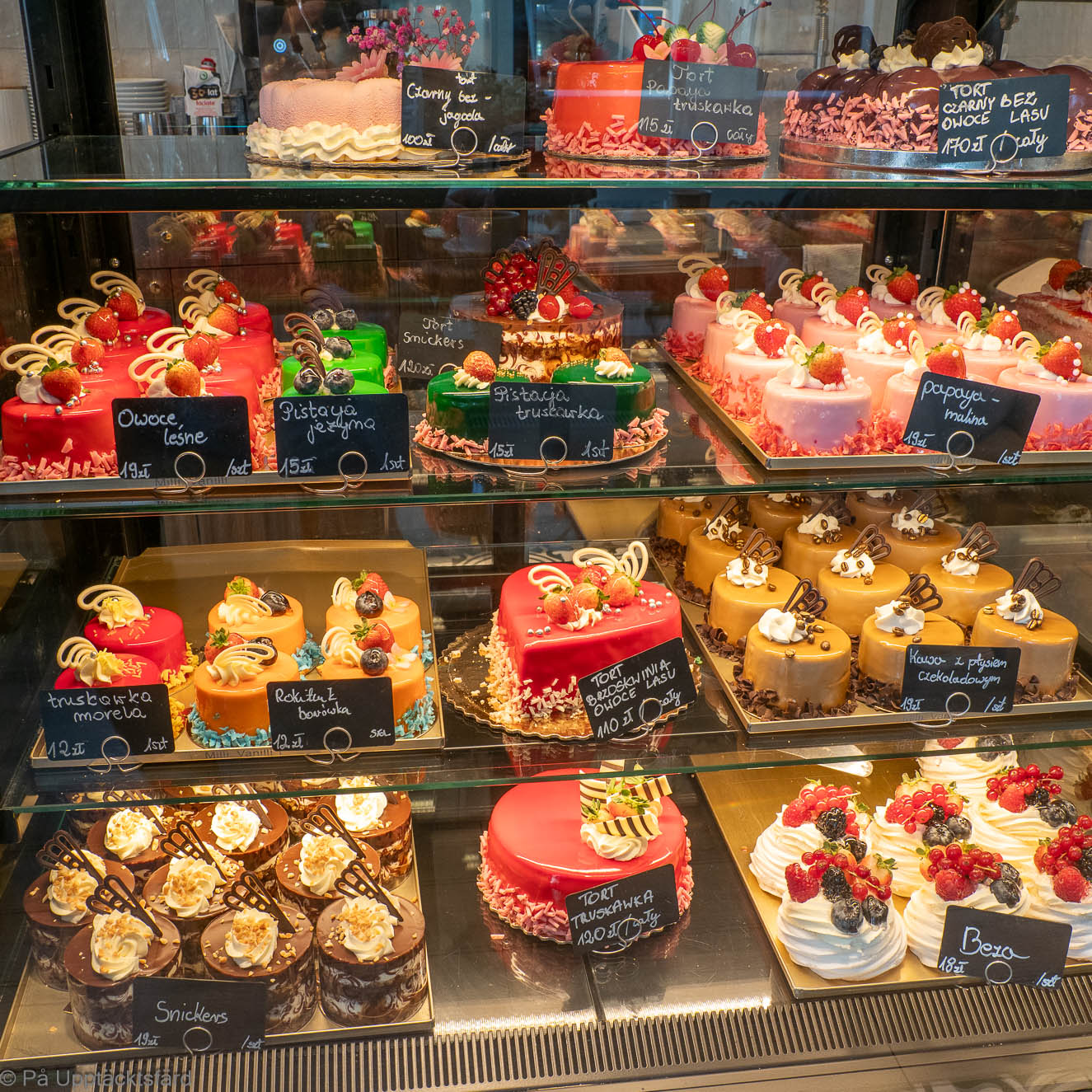 När vi lämnar parken befinner vi oss i en mer pulserande stad, med bostadshus, vanliga affärer och lokal trafik. Längs gågatan är det gott om butiker och kaféer som lockar än med färggranna bakelser, än med allsköns piroger eller vad sägs om socker- och glutenfria bakverk?