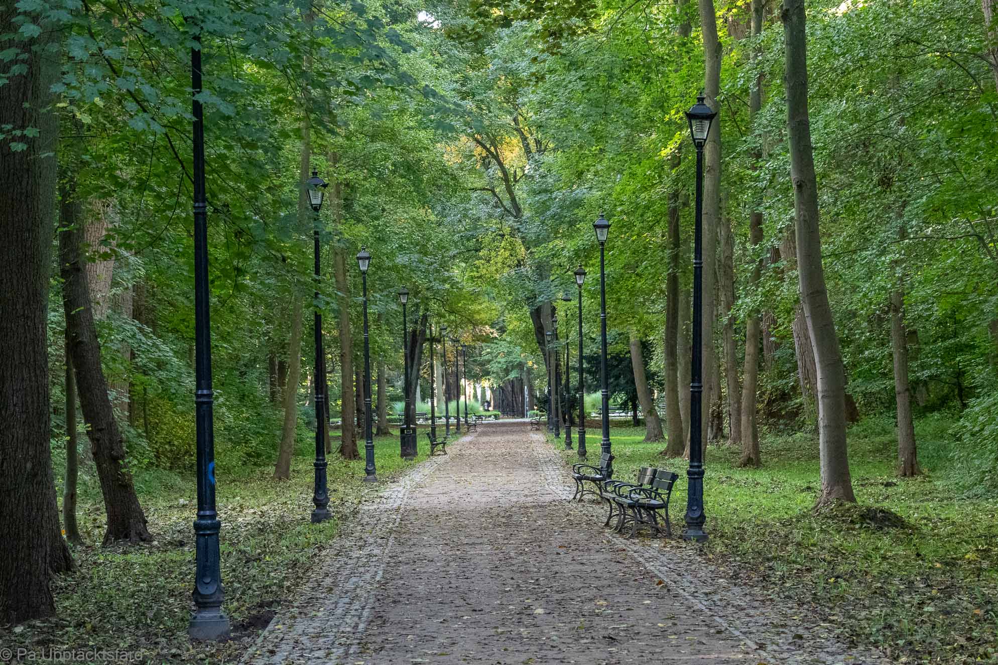 Vi lämnar kurkvarteret och svänger till höger mot centrum för att utforska stadens begivenheter. Det är lugnt i den rejäla Park Zdrojowy, kurparken, så vi lyssnar till fåglarnas konsert i den skogsliknande parken och njuter av blommorna vid en av fontänerna. En ekorre med lurvig svans hoppar vid ett av träden och försvinner i växtligheten.