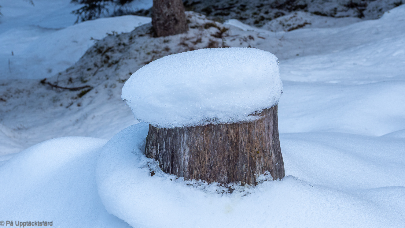 Här i dalen är granskogen liksom inklämd mellan bergen. Det är ensligt, knappt några människor såhär en vintrig vardag, det är fridfullt. Bara passerande tågs varnande signaler genljuder ett par gånger. Vi och naturen.